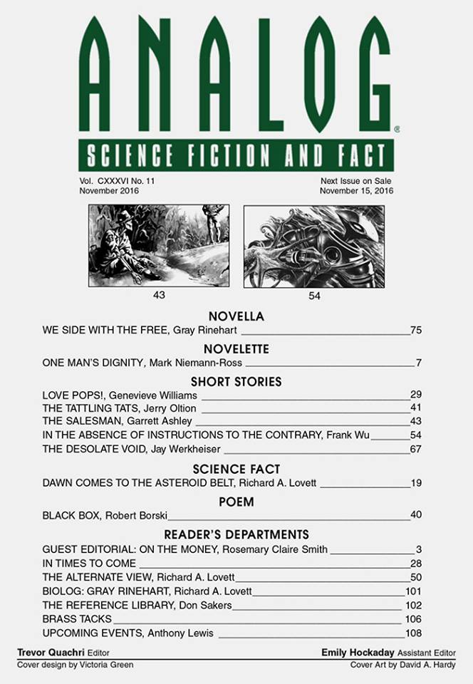 I have a new guest editorial in Analog’s latest issue: November 2016. I give some thought to placing a scientist and/or inventor on United States currency. Give it a read and find out who might merit this honor. Do you have suggestions of your own — someone I don’t mention, perhaps? Let me know in the comments.